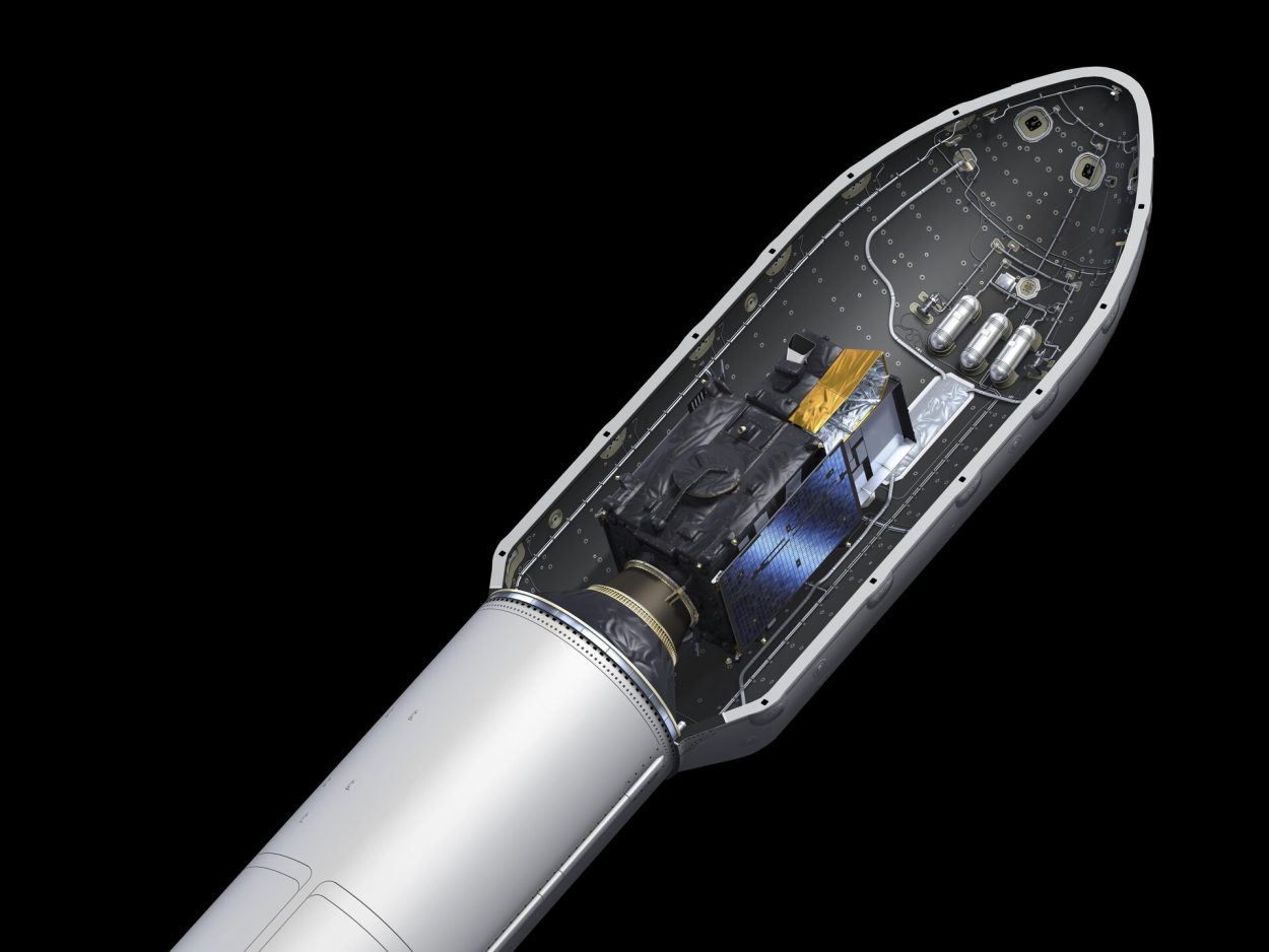 Grafische MTG-S1/Sentinel-4 unter der Nutzlastverkleidung. Quelle: ESA.