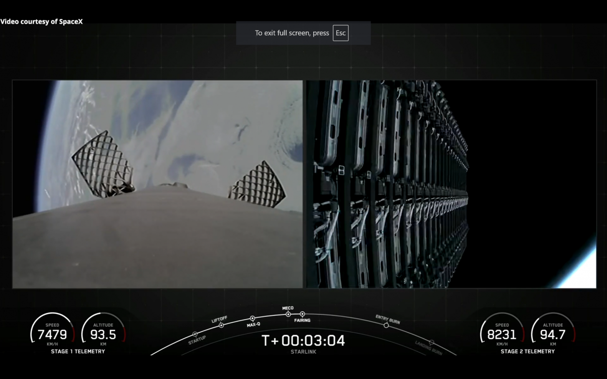 Screenshot der Startübertragung bei Flugminute 4 in 93 Kilometern Höhe. Quelle: SpaceX.