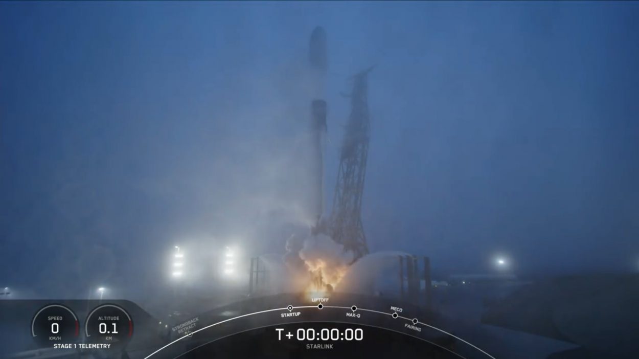Die Falcon 9 startet in dichtem Nebel. Quelle: SpaceX.