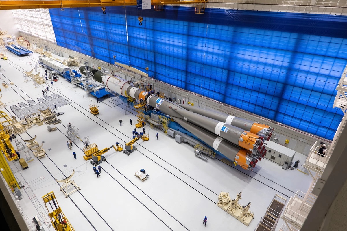 Die Rakete wird in Baikonur für den Start vorbereitet. Quelle: Roskosmos.